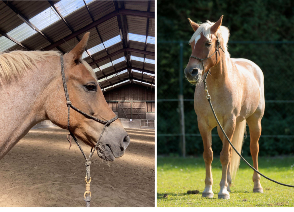 Koos, een kruising tussen Arabier en Haflinger, is in training gegaan met de vrijwilligers/verzorgers. Hij was al goed beleerd voor het rijden. Voor de inzet van onze hippotherapie moest hij wennen aan de tillift. Dat hebben we rustig met hem opgebouwd, hij pakt het heel goed op. Ondertussen heeft hij al een paar keer met cliënten gelopen.