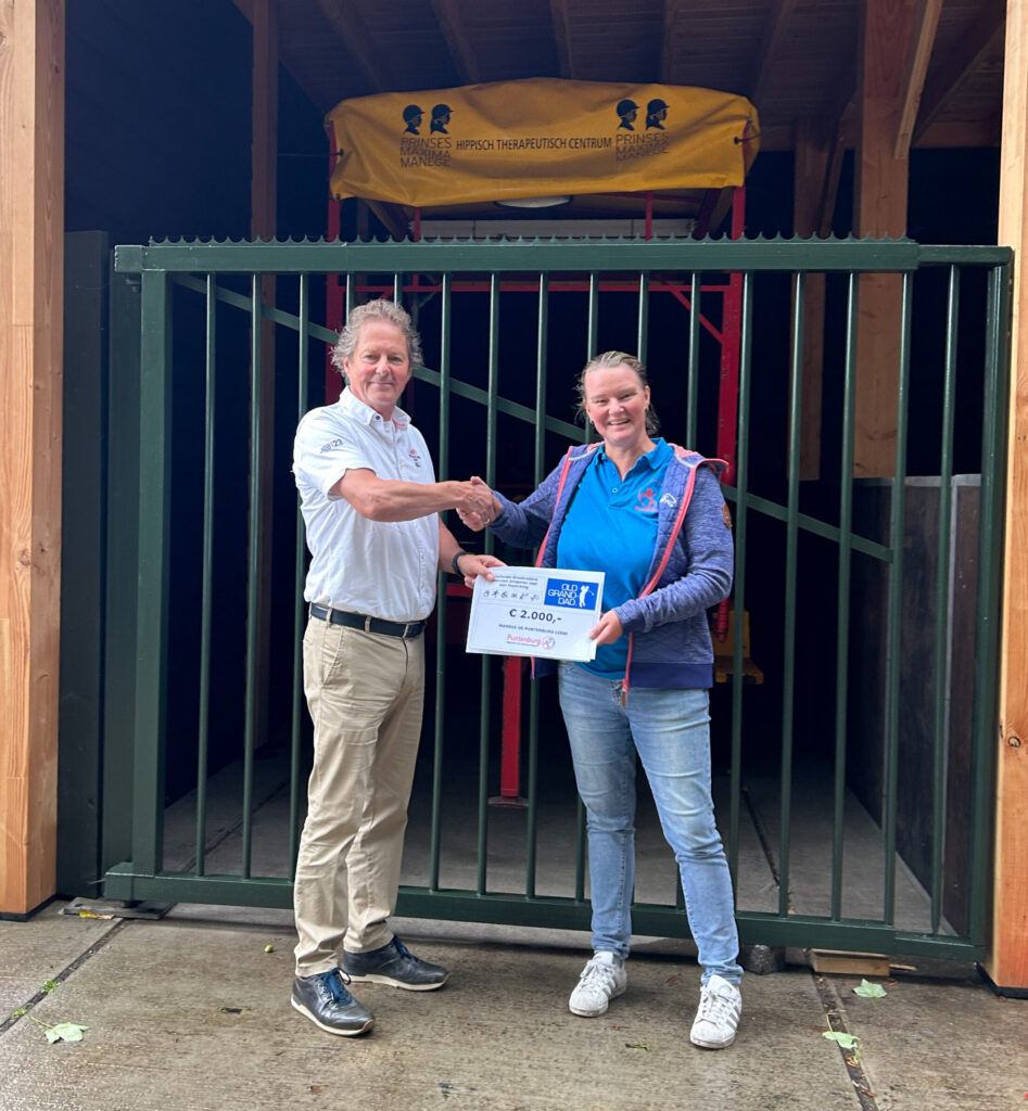 Stichting Old Grand-Dad overhandigt cheque aan Puntenburg voor nieuwe huifbed-overkapping